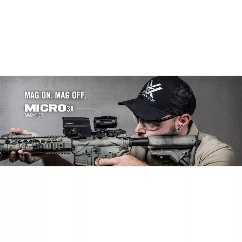 Kompaktný, ľahký, rýchlo a efektívne použiteľný zväčšovací modul Vortex pre Váš kolimátor alebo holografický zameriavač s 3x zväčšením. Rýchlovyklopná montáž umožňuje odklonenie, alebo zaklopenie modulu kedykoľvek potrebujete jednoduchým pohybom, bez stláčania akejkoľvek poistky. Výklopnú montáž je možné použiť na obe strany (vpravo / vľavo).