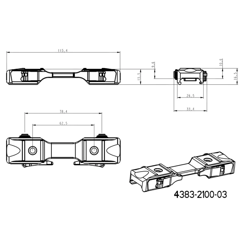 Rýchloupínacia základňa UNI na picatinny lištu podľa špecifikácie MIL-STD-1913. Prevedenie short, dĺžka 115,4 mm. Na základňu sa montujú krúžky JKN UNI rôznych priemerov a výšok. Sila prítlaku rýchloupínacích páčiek je regulovateľná. Upínacie páčky je možné ovládať aj v zimných rukaviciach. Povrchová úprava čiernením zabezpečuje antireflexný povrch, ktorý minimalizuje odlesky a zvyšuje odolnosť voči opotrebeniu.