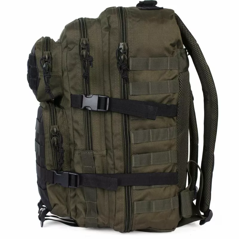 Veľký štvorkomorový batoh Mil-Tec US Assault PACK LARGE RANGER v olivovej a čiernej farbe s objemom 36 litrov. Vrchný materiál z polyesteru potiahnutého PVC, s polyesterovou podšívkou a s výplňou z peny EVA.