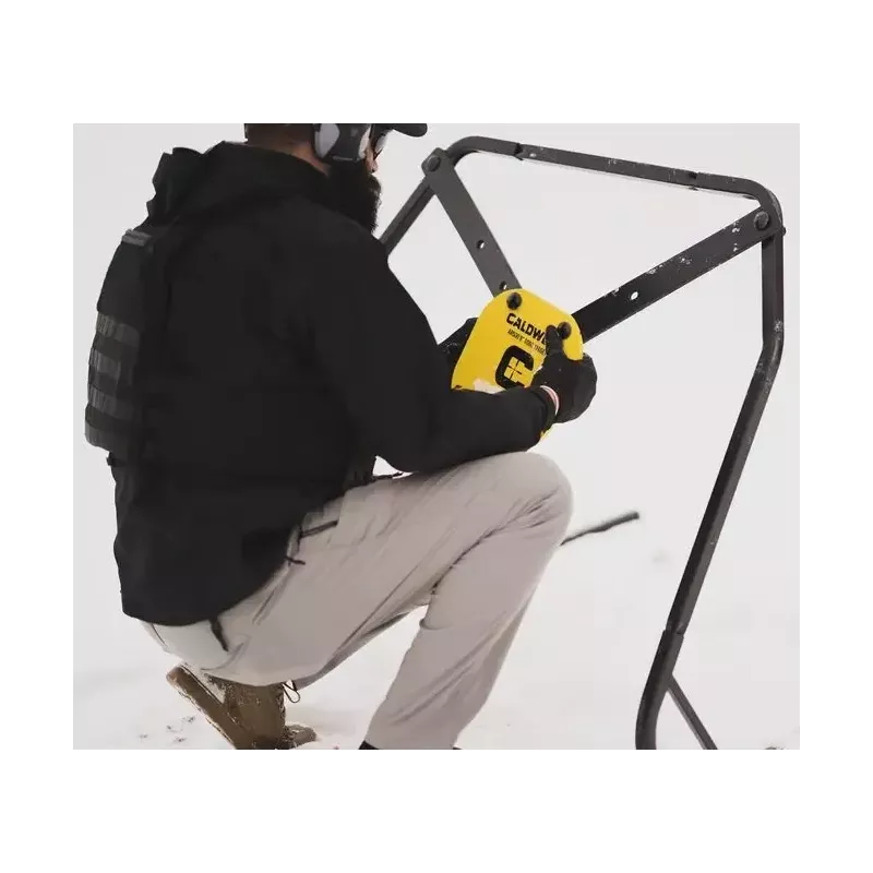 Prenosný terčový stojan Caldwell s pásikmi kombinuje odolné gumové pásky XL na zavesenie terčov a skladací oceľový stojan pre všetky obľúbené terče Caldwell AR500 Steel.