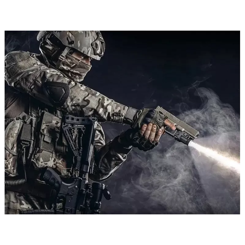 Kompaktné a ľahké pištoľové svietidlo WL14 s výkonom 500 lúmenov. Odolné telo z eloxovaného hliníka. Dizajn a ergonomické spracovanie svietidla je vhodné pre praváka aj ľaváka. Ovládanie spínacími tlačidlami na boku. Svietidlo má 2 svetelné režimy - High 500 Lumenov a Low 52 Lumenov. Je možné ho upevniť na akúkoľvek pištoľ vybavenú lištou Picatinny alebo Glock. Rýchla inštalácia pomocou uťahovacieho kolieska.