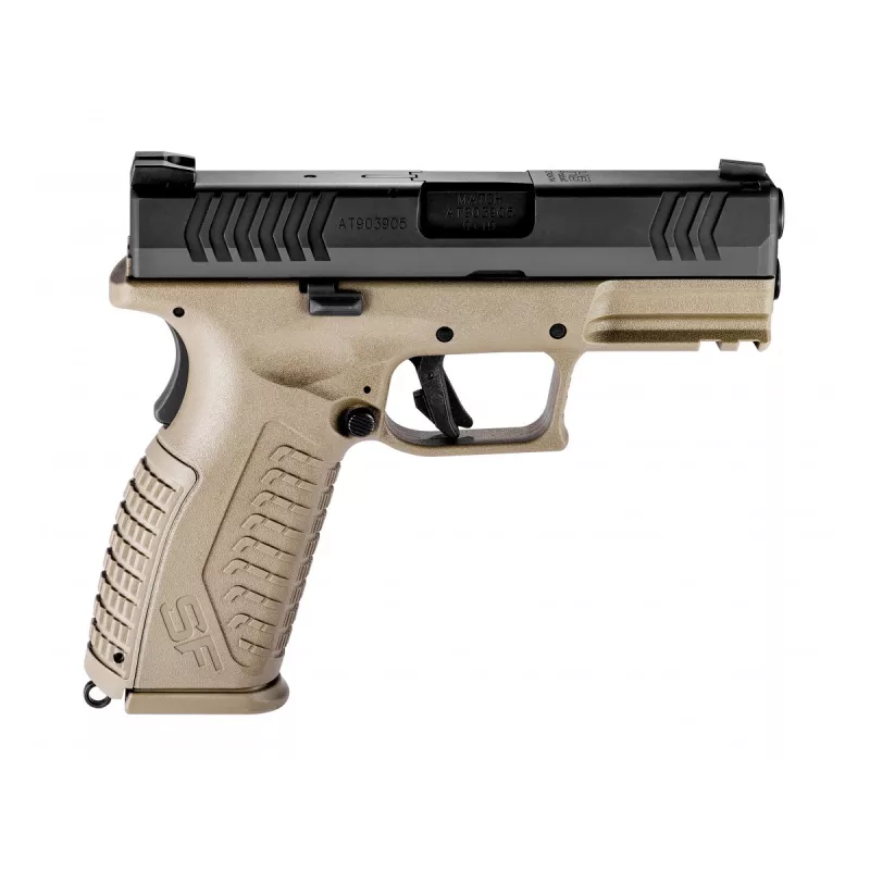 Pištoľ kal. 9x19 s dvojradovým zásobníkom. Cieľnik a muška sú stranovo nastaviteľné, vyrobené z ocele, so zúbkovaním zabraňujúcim oslneniu a zvýraznenými bielymi bodmi. HS SF19 3.8 FDE disponuje dlaňovou poistkou, poistkou spúšte, poistkou úderníka, indikátorom náboja v komore a indikátorom polohy úderníka. Medzi ďalšie vlastnosti patrí obojstranný vypúšťač zásobníka i záchyt záveru, picatinny lišta, agresívne textúrovanie rukoväte, vymeniteľné chrbty rukoväte (3 veľkosti) a vylepšená spúšť s kratším resetom. Zväčšený lúčik spúšte umožňuje ľahkú manipuláciu aj pri používaní rukavíc. Pištoľ je dodávaná s tromi vysokokapacitnými zásobníkmi z nehrdzavejúcej ocele (19+1).